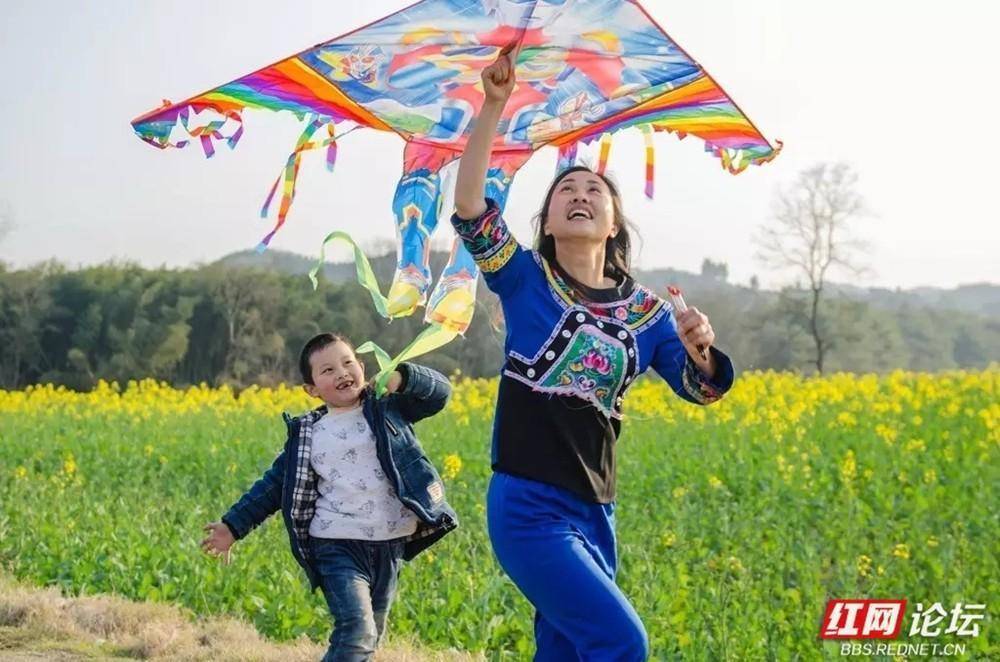 油菜花田里的欢笑声。
