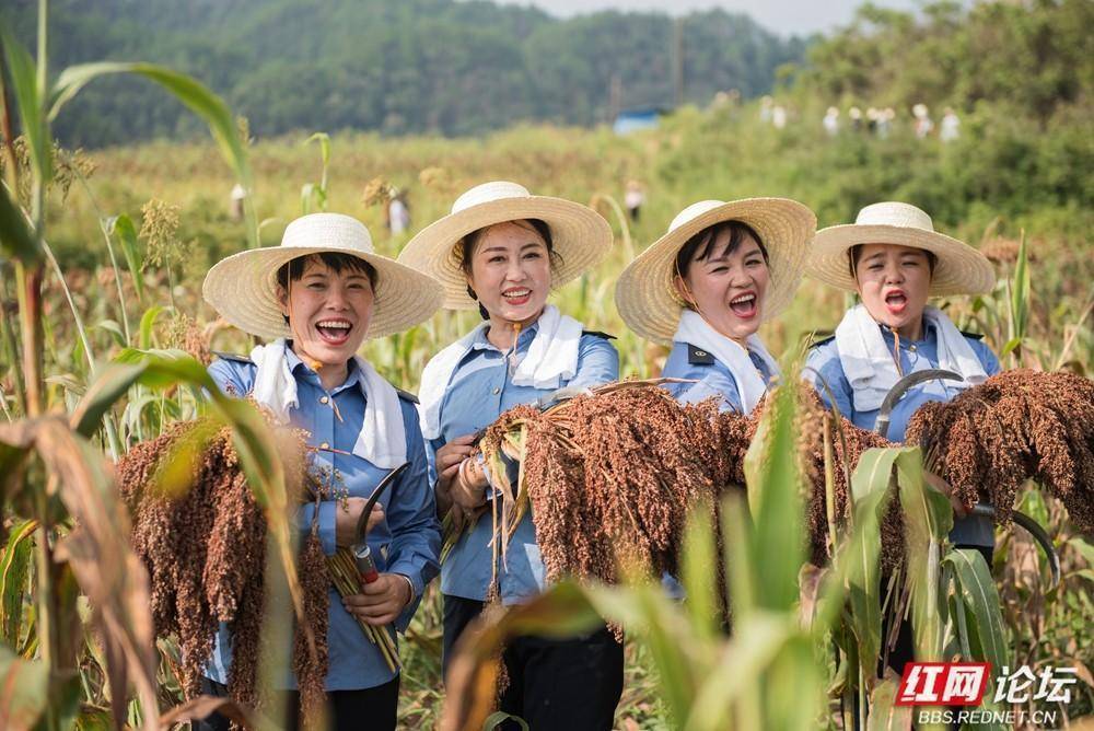 长沙公益慢火车的姐妹们利用轮休日帮助村民收割高粱。