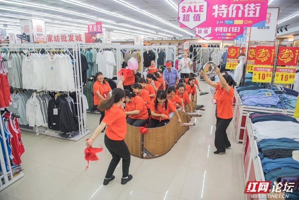 超市里的欢笑浪花:一场即兴的“室内赛龙舟”。