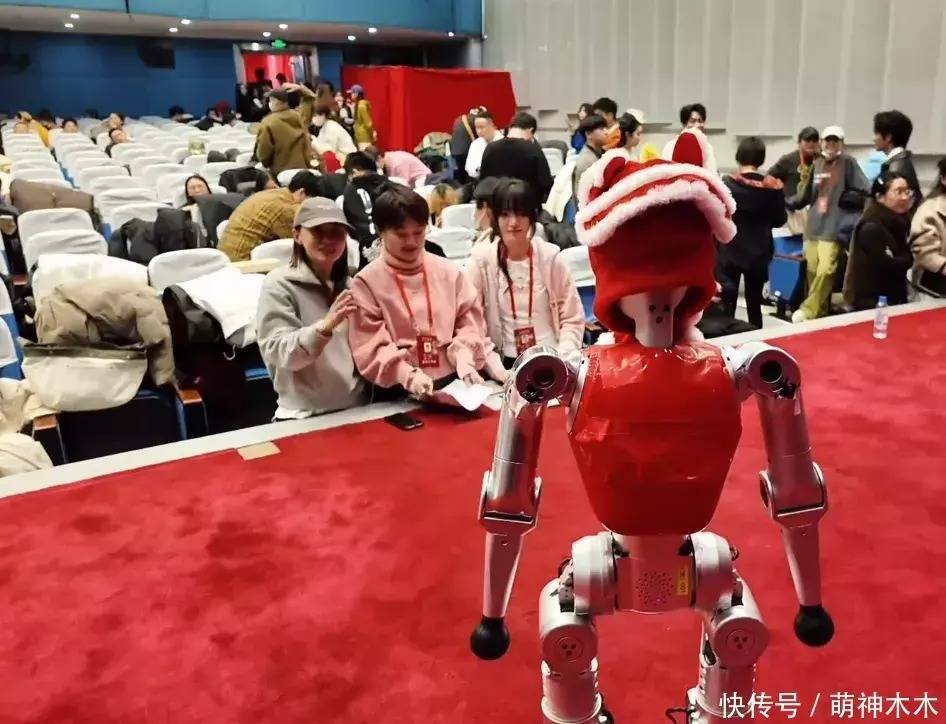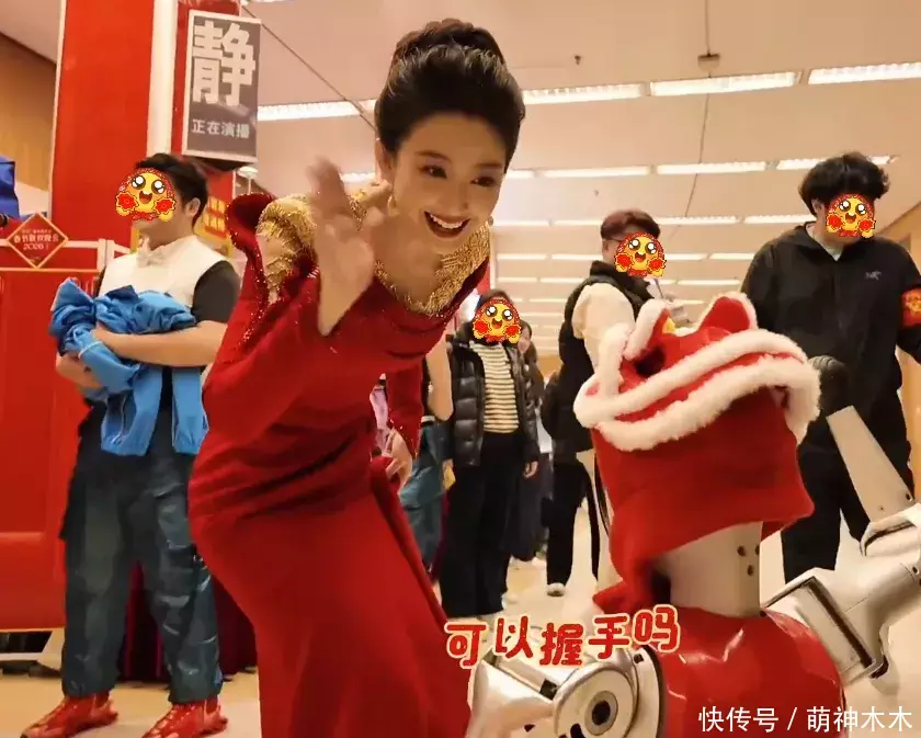 春晚机器人出来“探班”,偶遇正忙着彩排的刘心悦,刘心悦还停下来和机器人互动握手。看来虽然是第一次上春晚,但有丰富晚会主持经验的刘心悦心态还是不错的。