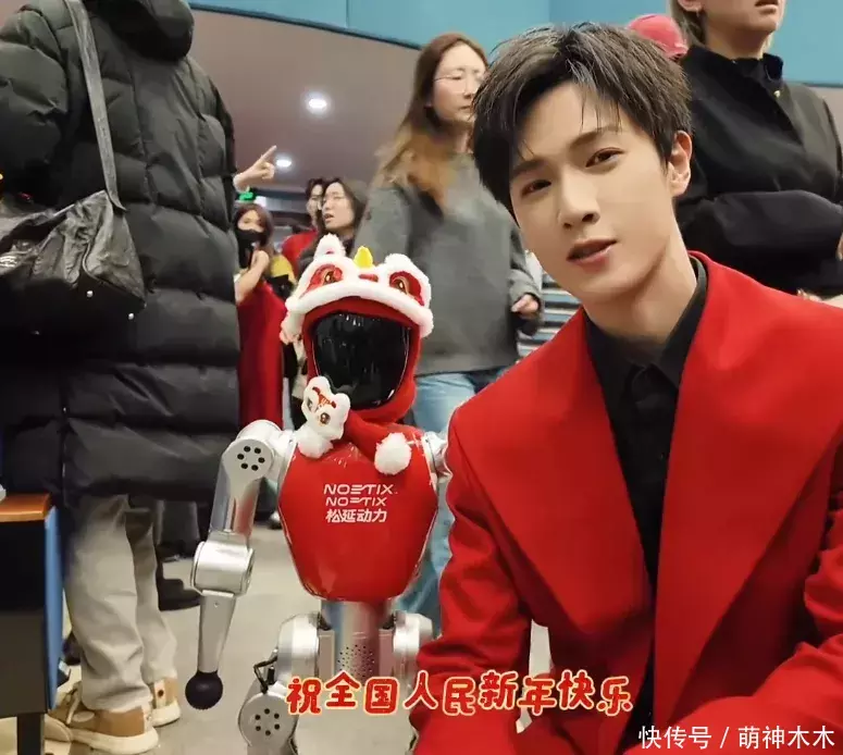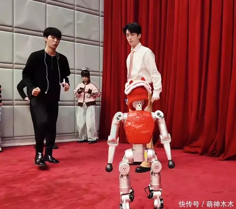 走廊里还偶遇了陈小春,造型十分“闪亮”,看到机器人还主动握手,十分配合幕后花絮采集,营业非常积极。
