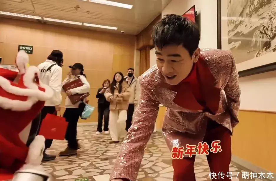 其他男星都穿着红色西装,开开心心打招呼,似乎节目彩排非常顺利。李昀锐和白鹿是同一个节目,在临上场彩排前还有说有笑。