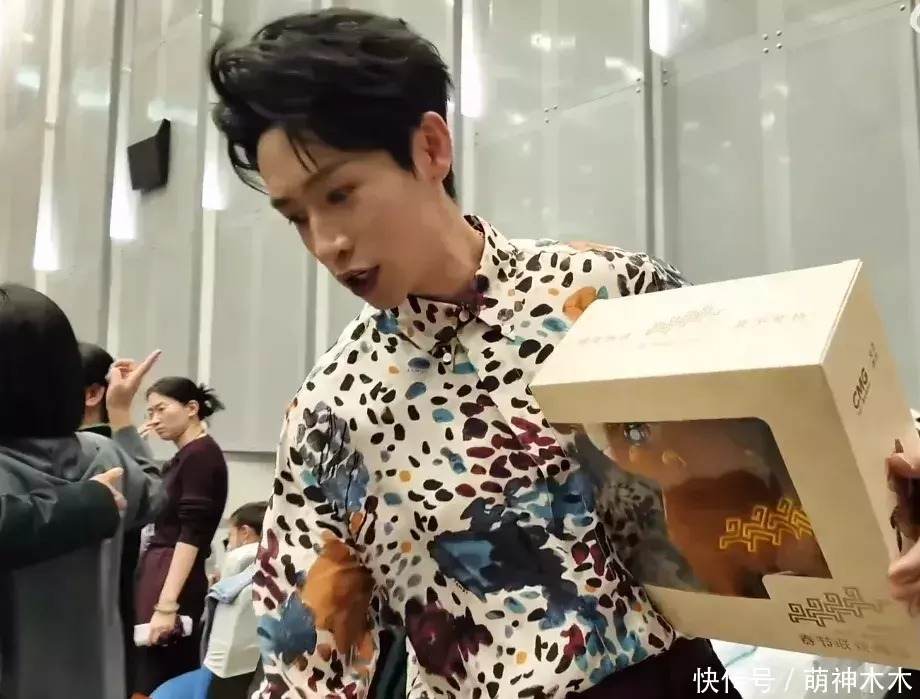 除了这些小生之外,实力唱将魏晨也现身后台,手里还拿着个大盒子,似乎是马年春晚的周边。魏晨的花衬衫也比较亮眼,终于不是千篇一律的红色穿搭了。