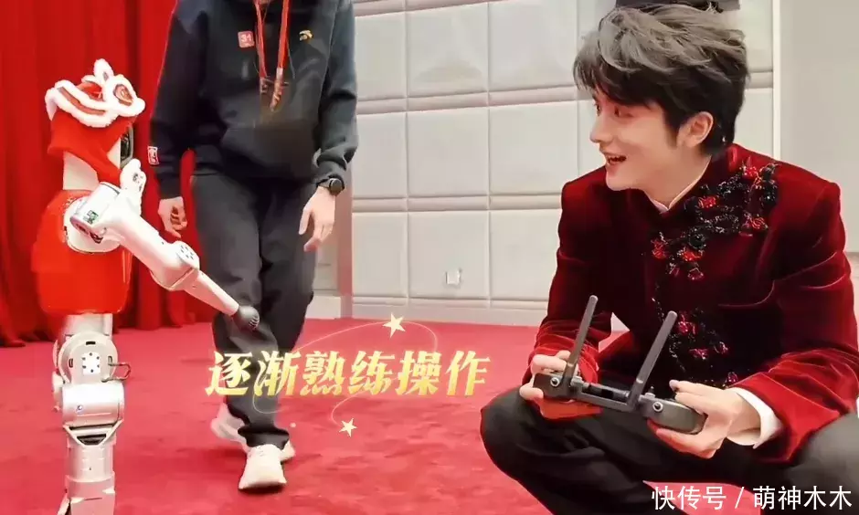 还有直接拿着机器人遥控玩的张新成,对操纵机器人充满好奇;